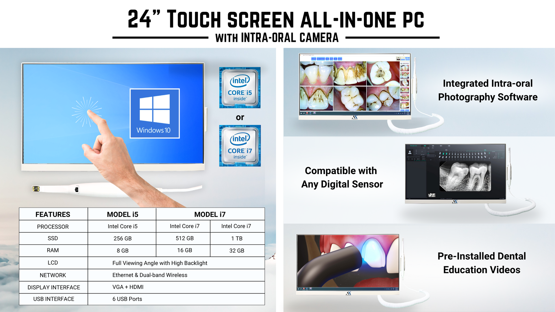 24" Touch Screen All-In-One Computer with Intra-Oral Camera