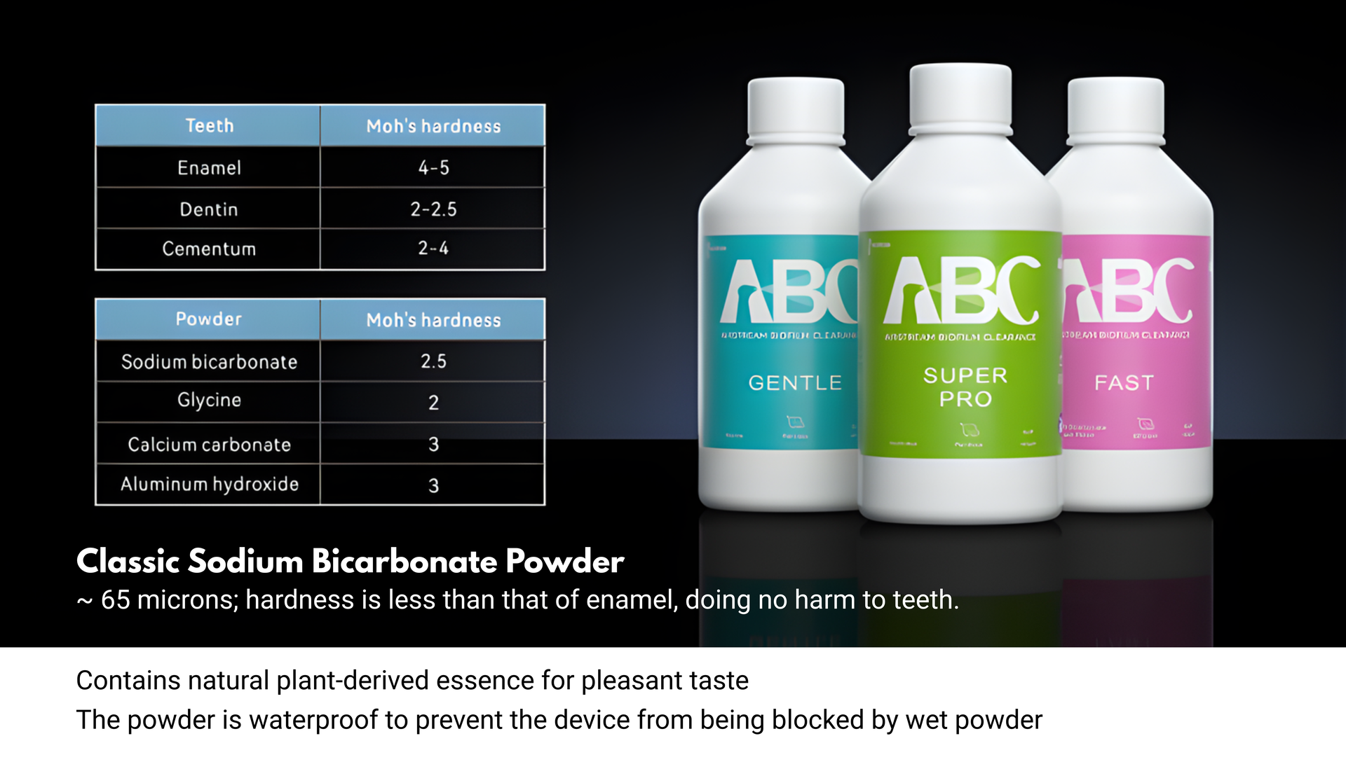 This ultra-fine 25 μm glycine powder provides gentle yet effective cleaning for periodontal pockets, gums, palate, and tooth surfaces. With particles softer than dentin, it enables safe, minimally invasive supragingival and subgingival cleaning—ideal for pediatric patients, orthodontic care, restoration maintenance, periodontal therapy, and implant maintenance.